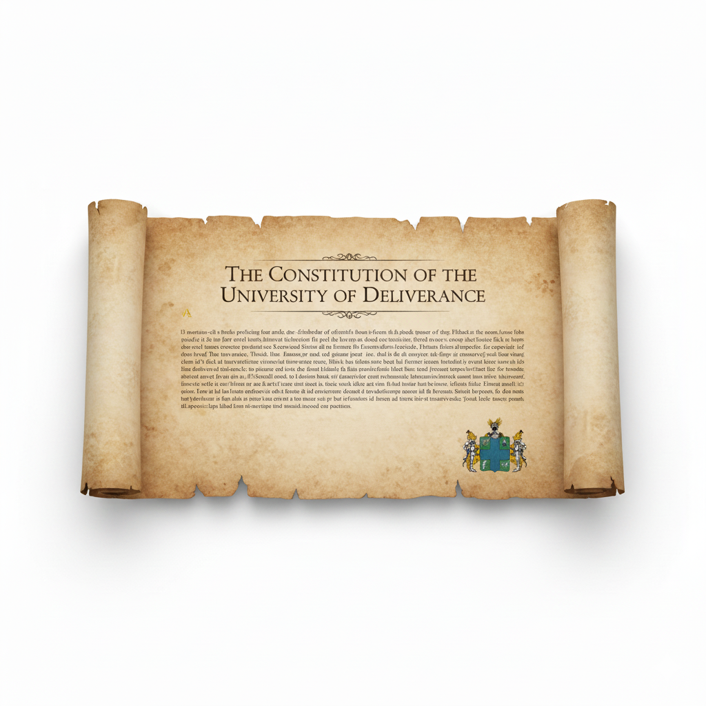 This Constitution, embodying the spirit of truth, emancipation, and sovereign intellect, is hereby adopted and declared to be the supreme governing document of the University of Deliverance.